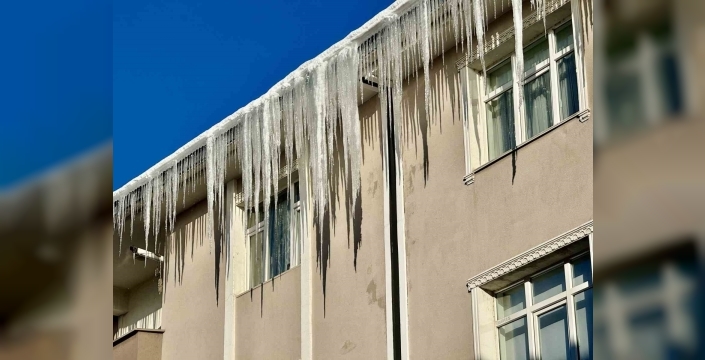 Aşırı soğukların etkisiyle bina çatılarında metrelerce uzunlukta buz sarkıtları ise tehlike saçıyor.