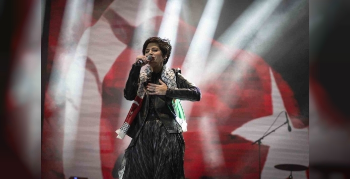 Sanatçı, "Sadece eğlenmek ve keyiflenmek için müzik yapmıyoruz. Bazen üzüntülerimizi, acılarımızı paylaşmak, anlatamadıklarımızı anlatmak için müzik bizim şifamız oluyor. Bu akşam da sizlerle, dünyada yapayalnız bırakılmış, acıları görünmeyen sevgili Filistinli kardeşlerimiz için bu şarkıyı söylemek istiyorum" dedi.