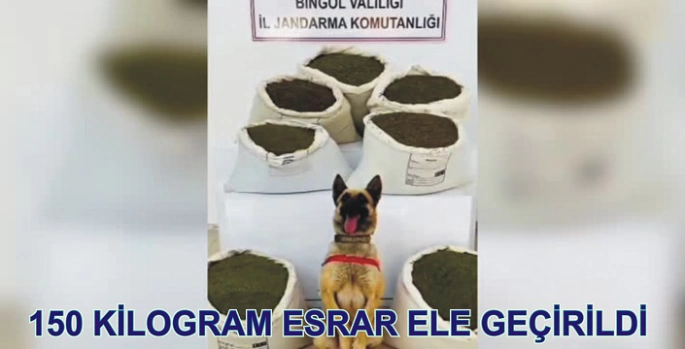 Ekipler, dedektör köpek yardımıyla gerçekleştirdiği aramada araziye gizlenmiş 150 kilogram toz esrar ele geçirdi.