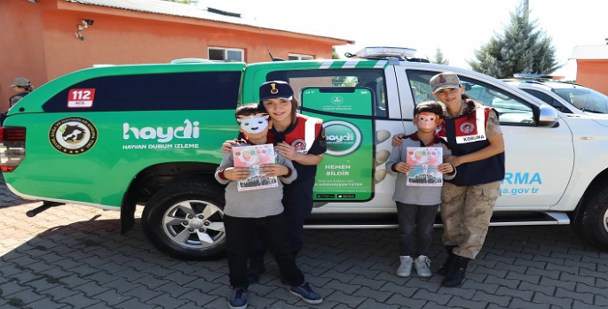 Minik öğrencilere İl Jandarma Komutanlığı tanıtılıp “Tim Jandarma” çizgi filmi izlettirildi. Daha sonra jandarma personelinin hazırladığı trafik stantlarını gezen öğrenciler meraklı gözlerle jandarma envanterinde bulunan HAYDİ aracı hakkında bilgi aldı ve hatıra fotoğrafı çektirdi. Ardından köpek unsurları, öğrencilere gösteri yaparak unutulmaz bir gün yaşattı. Yapılan faaliyetin sonunda öğrencilere hayvan figürlü maskeler dağıtılarak çeşitli ikramlarda bulunuldu.