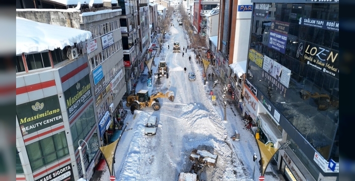 SERHED HABER- Bingöl’de günlerdir süren kar yağışının durmasının ardından kent merkezinde kar temizleme çalışmaları aralıksız sürüyor.