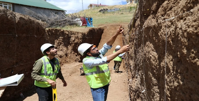 Yedisu ve Adaklı ilçelerinde kazılan 2,5 ila 5 metre derinliğinde 30-35 metre uzunluğundaki hendeklerde çalışma yürüten araştırma ekibi fay hatlarının kestiği katmanları inceliyor.