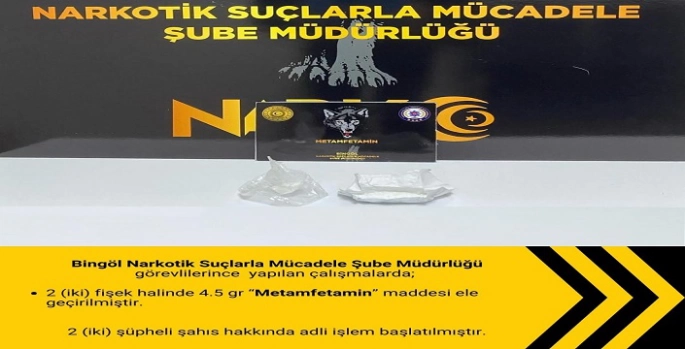 SERHED HABER - Bingöl Emniyet Müdürlüğü Narkotik Suçlarla Mücadele Şube Müdürlüğü ekiplerince yapılan çalışmalarda 2 fişek halinde 4.5 gram metamfetamin maddesi ele geçirildi.