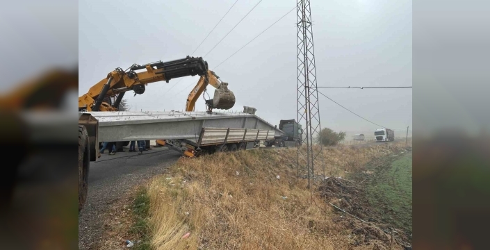 SERHED HABER - Kaza, Bingöl Havalimanı yolu üzerinde, Büyük Tekören köyü kavşağında meydana geldi. Edinilen bilgiye göre, çiftlik için çatı bloğu taşıyan 23 ACE 409 plakalı tır, virajı alamayınca yoldan çıkarak yan yattı. Yaralananın olmadığı kazada, maddi hasar meydana geldi. İhbar üzerine bölgeye jandarma ekipleri, ekskavatör, kepçe ve mobil vinç sevk edildi. Kapanan yol aracın yoldan kaldırılmasıyla yeniden açıldı.