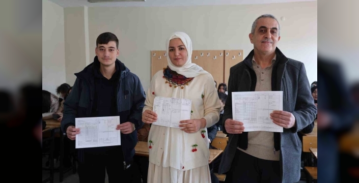 Karne heyecanını paylaşan 9’uncu sınıf öğrencisi Mustafa Celayir ise, "Hocalarım ile beraber bugün karne heyecanı yaşadık. Üç nesil burada yan yanayız" dedi.