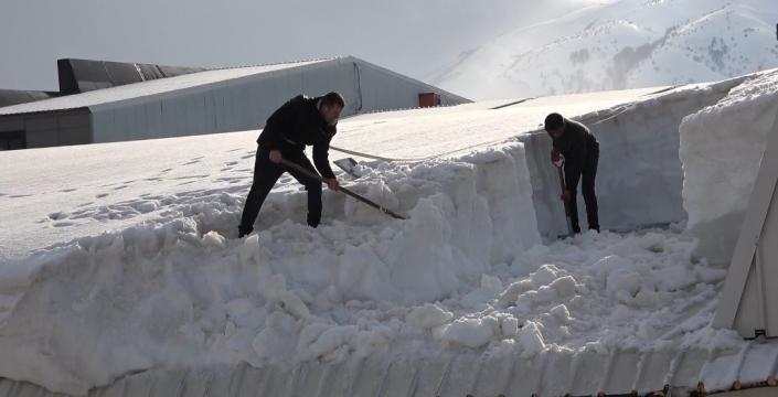 Yüksek binaların çatılarına çıkan vatandaşlar, önlem olarak kendilerine ip bağlayarak kar küreme çalışması yapması dikkat çekiyor. Kar yağışının durmasıyla birlikte Organize Sanayi Bölgesi (OSB) esnafı, vatandaşların can ve mal güvenliğini korumak amacıyla çatılarda kar temizliği çalışmalarına hız verdi.
