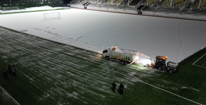 Bitlis’te futbol karşılaşmalarının aksamaması için ekipler statta kar temizleme çalışması başlattı.