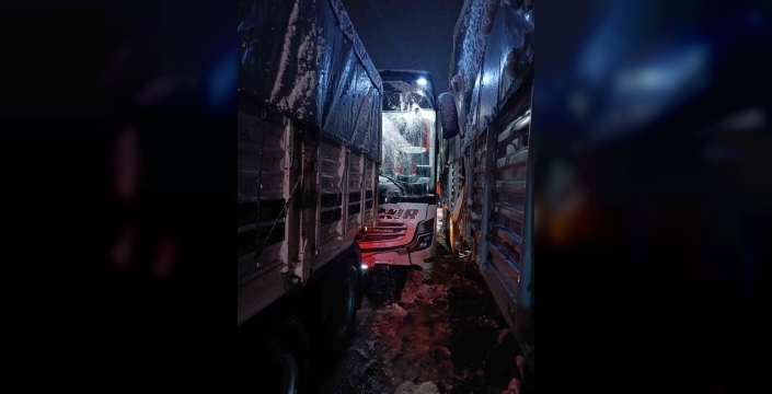 Bitlis-Baykan karayolunda gece saatlerinde meydana gelen trafik kazasında yolcu otobüsü, önünde seyreden tıra arkadan çarptı.