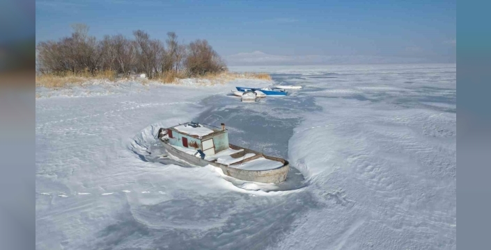 SERHED HABER- Nemrut Krater Gölü başta olmak üzere Aygır, Nazik ve Arin gölleri ile çevredeki sulak alanlar buzla kaplanarak ortaya eşsiz görüntüler çıkardı.