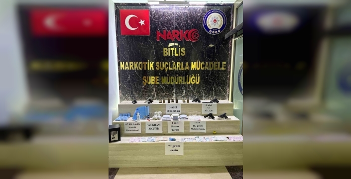Bitlis Valiliğinden yapılan açıklamada, "Bitlis, Tatvan ve Hizan Cumhuriyet Başsavcılıkları koordinesinde yürütülen soruşturma kapsamında; uyuşturucu madde satıcılarına yönelik Bitlis Emniyet Müdürlüğü’ne bağlı Narkotik Suçlarla Mücadele Şube Müdürlüğü ve İstihbarat Şube Müdürlüğü ekipleri, özel harekat timleri destekli Bitlis, Tatvan ve Hizan’da 29 şüpheliye eş zamanlı operasyon düzenlendi. Operasyonda, 29 şüpheli yakalandı. Şüphelilerden 27’si çıkarıldığı adli mercilerce tutuklandı. 2 şüpheli hakkında adli kontrol tedbiri uygulandı. Yapılan aramalarda, 117 bin 814 içimlik peçeteye emdirilmiş sentetik kannabinoid maddesi, 1 kilo 103 gram metamfetamin maddesi, 360 gram skunk, 77 gram eroin, 18 gram sentetik kannabinoid ham maddesi, 6 adet 765 mm silah, 108 adet tabanca fişeği, 14 adet ak 47 fişeği, 3 adet el bombası, 5 adet hassas terazi, suçtan elde edildiği değerlendirilen muhtelif miktarda para ele geçirildi. Hemşerilerimizin huzuru ve güvenliği için uyuşturucu madde imalatı, kaçakçılığı ve kullanımına karşı yürütülen kararlı mücadelemiz devam edecektir" denildi.