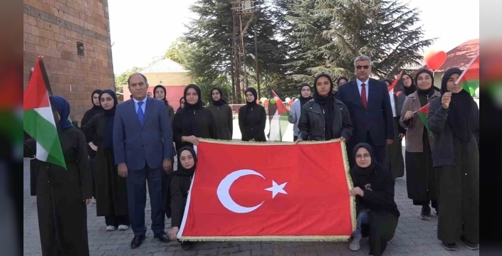 Bitlis İl Milli Eğitim Müdürü Vedat Kaya, Hatuniye Kız Anadolu İmam Hatip Lisesi’nde düzenlenen etkinliğe katılarak öğrencilere eşlik etti. Öğrenciler ellerinde Filistin ve Türk bayrağı ile Gazze’de yaşanan soykırıma dikkat çekerek hazırlamış oldukları Filistin renklerine boyanmış balonları ‘Özgür Filistin’ sloganı ile gökyüzüne uçurdu.