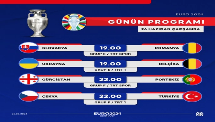Avrupa Futbol Şampiyonası'nda 26 Haziran Çarşamba günü E ve F gruplarının son maçları oynanacak