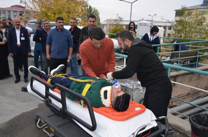 Yapılan Tatbikata Bulanık Devlet Hasatnesi Başhekimi Dr. Sadrettin Arslan ve Bulanık Devlet Hastanesi Sağlık Bakım Müdürü Ayşe Zırhlı da katıldı.