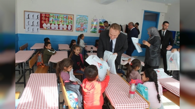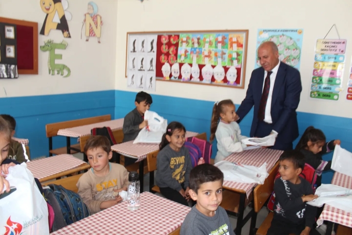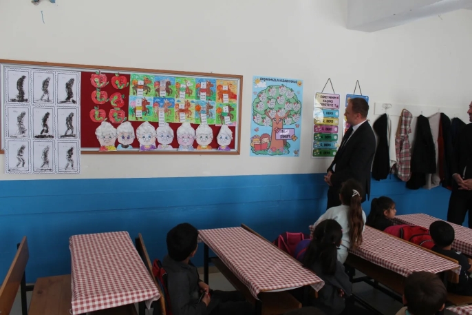 Ziyaret kapsamında Kaymakam Koşansu, öğrencilerle bir araya gelerek onları dinledi ve kırtasiye malzemeleri hediye ederek başarı dileklerini iletti.