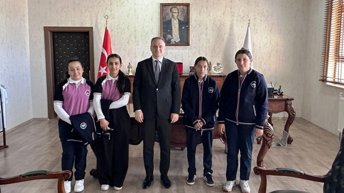 Çalışmalar sonucunda yeniden okula dönen kız öğrenciler, Bulanık Kaymakamı Ömer Övünç Koşansu’yu makamında ziyaret ederek teşekkürlerini iletti.