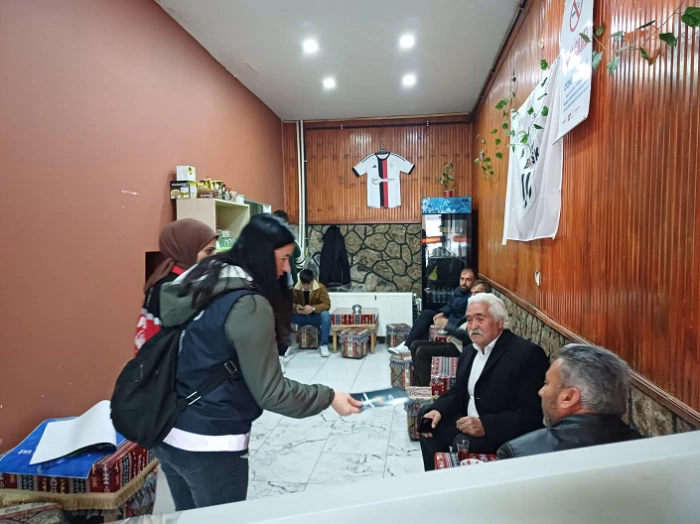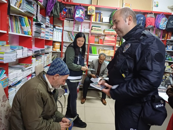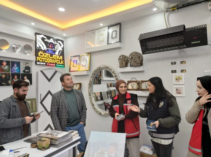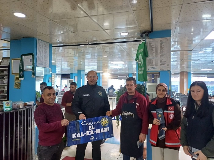 SERHED HABER - 25 Kasım Kadına Yönelik Şiddete karşı Uluslararası Mücadele Günü etkinlikleri kapsamın Bulanık Sosyal Hizmetler Müdürlüğü ve Bulanık İlçe Emniyet Müdürlüğü personelleri ile birlikte Bulanık ilçe merkezinde esnaflara ve vatandaşları bilgilendirip broşür dağıtarak iş yerlerine afiş astılar.