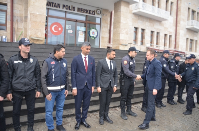 Kaymakam Ömer Övünç Koşansu, bayram programı kapsamında İlçe Emniyet Müdürlüğü, İlçe Jandarma Komutanlığı ve Özel Harekat yerleşkesini ziyaret etti. Görev başındaki güvenlik personeliyle tek tek bayramlaşan Koşansu, özverili çalışmalarından dolayı tüm personele teşekkür etti.