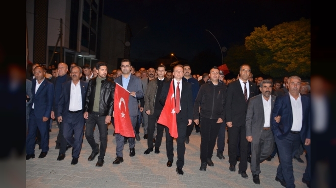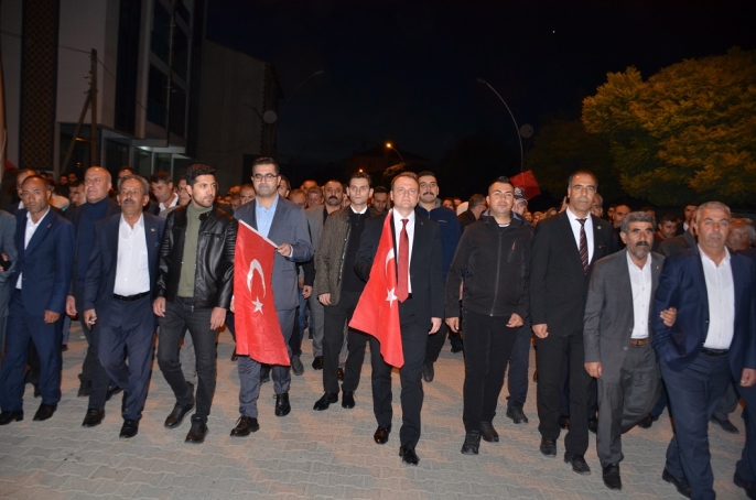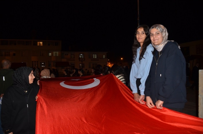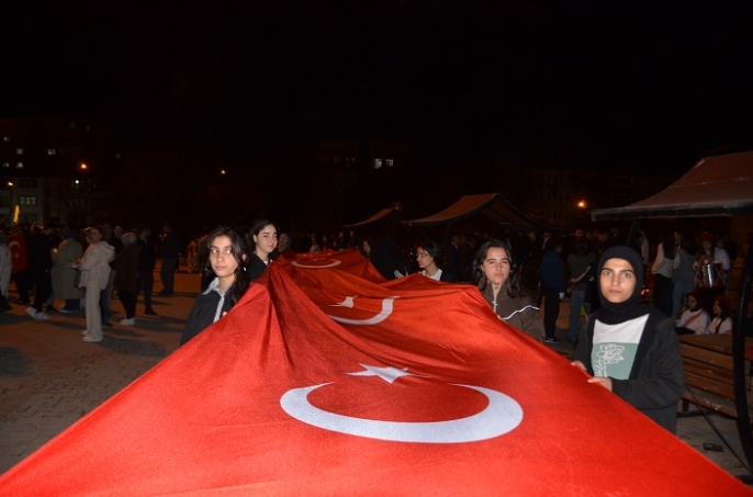 SERHED HABER -Bulanık Kaymakamlığı ile Gençlik ve Spor İlçe Müdürlüğü'nce düzenlenen yürüyüş için yüzlerce kişi Yeni mahalle Hasgül market önünde bir araya geldi. Vatandaşlar, ellerinde Türk bayrakları ve meşalelerle Mehteran Marşı eşliğinde yeni mahalleden, kent meydanına kadar yürüdü.