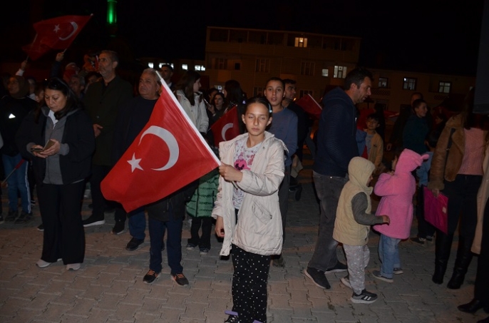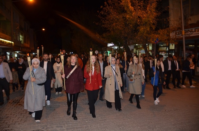 Öğrencilerin ve velilerin katıldığı coşkulu yürüyüşte renkli görüntüler oluştu. Ellerinde fenerler ve bayraklarla coşkulu bir şekilde gerçekleştirilen yürüyüşte marşlar söylenerek, sloganlar atıldı. Yürüyüşü balkonlarından ve pencerelerinden seyreden vatandaşlarda öğrencilere alkışla karşılık verdi. Yürüyüş kent meydanında Şiir’in okunması ve Müzik dinletisi ile sona erdi.