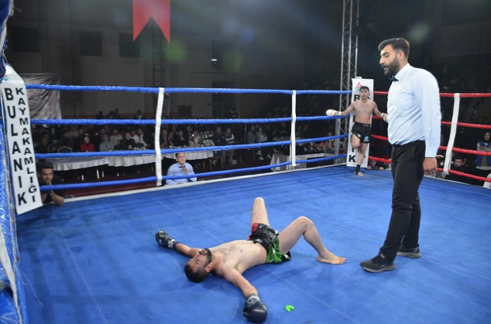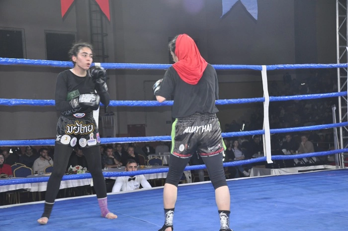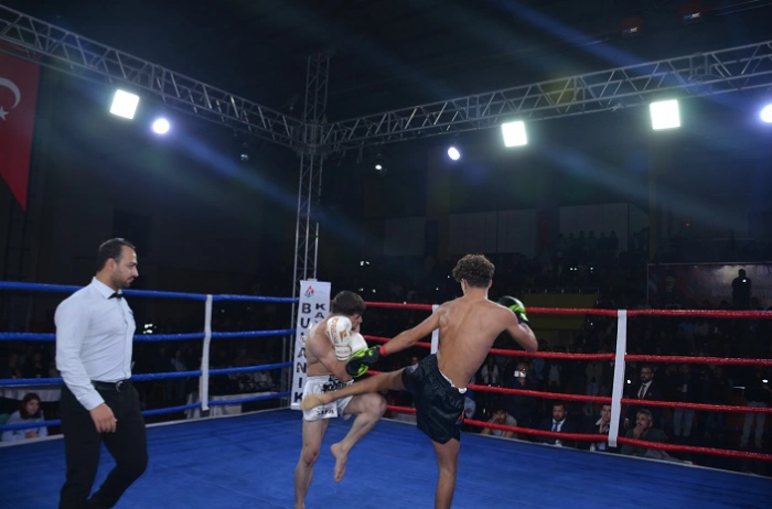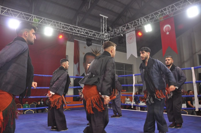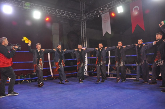 Halk oyunları gösterisinin ardından Türkiye, İran ve Azerbaycan'dan müsabakalara katılan 150 sporcu, Cumhuriyetin anısına ringde kazanmak için mücadele etti.