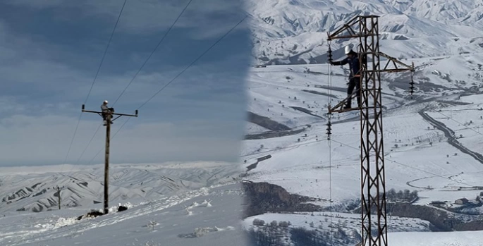 Dondurucu soğuğa rağmen direklere tırmanan ekipler, arızayı gidererek köylere yeniden elektrik verilmesini sağladı.