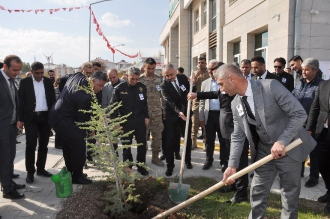 Yapılan konuşmaların ardından fidanlar, katılımcılar tarafından toprakla buluşturuldu.