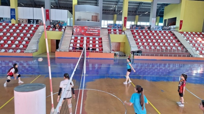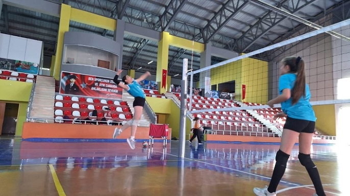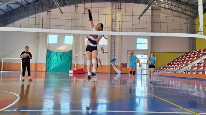 Sporcu genç kızlar, Bulanık Kapalı Spor Salonu’nda düzenlenen antrenmanlarla hem kondisyonlarını güçlendiriyor hem de takım çalışması becerilerini geliştiriyor.