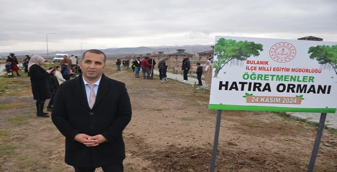 Öğretmenler Hatıra Ormanına fidan diktikten sonra açıklama yapan Bulanık İlçe Milli Eğitim Müdürü Yalçın Tunçel, “24 Kasım Öğretmenler Günü dolayısıyla aday öğretmenlerimiz tarafından 100 adet ağaç dikildi. İnşallah bunu önümüzdeki yıllarda da devam ettireceğiz. İlçemizde ciddi bir ağaçlandırma çalışması düşünüyoruz. 24 Kasım Öğretmenler Günü nedeniyle hafta içinde birçok etkinlik düzenlendi. Son etkinliğimizde bugün Şehit Öğretmenlerimiz için diktiğimiz fidan etkinliğiydi. Burada şehit öğretmenlerimiz adına 100 fidan diktik. Burasını hatıra ormanına olarak oluşturduk ve bugün tabelamızı da diktik. Artık bundan sonraki süreçte, yıllarda öğretmenlerimiz buraya fidanlar dikerek, inşallah bu hatıra ormanını daha da büyütecekler. İnşallah önümüzdeki süreçte daha farklı hizmetler sunacağız. İnşallah hayırlara vesile olur. Emek veren herkese teşekkür ederim ” dedi.