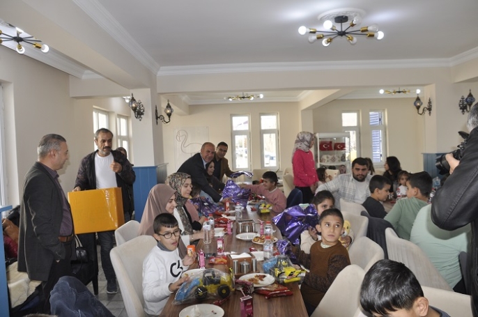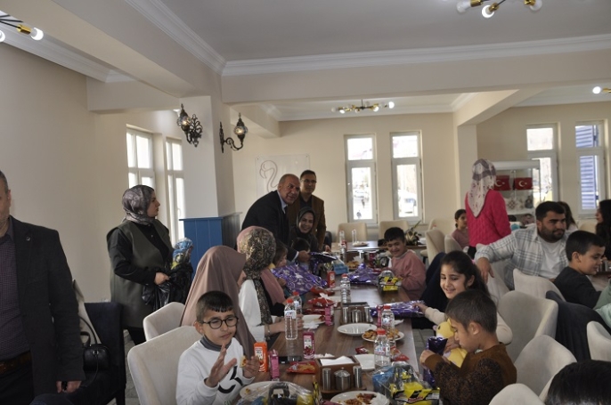 Yapılan konuşmanın ardında Bulanık Kaymakamlığına bağlı Aile Destek Eğitim Merkezlerinde (ADEM) yapılan Orogami bebekler ve öğretmen ve İlçe Milli Eğitim Müdürlüğü tarafında hazırlanan oyuncakları öğrencilere Sosyal Yardımlaşma ve Dayanışma Vakfı Müdürü Nazire Korkmaz ve İlçe Milli Eğitim Müdürü Metin Aral tarafında hediye edildi.