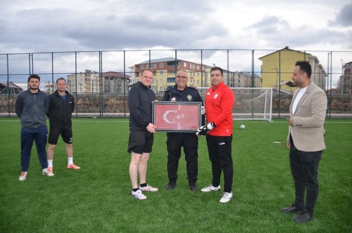 Maçtan önce Bulanık Kaymakamı Ömer Övünç Koşansu, İlçe Emniyet Müdürü Engin Arlı’ya Türk bayraklı tablo hediye ederek Polis Haftası’nı kutladı.