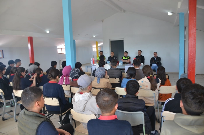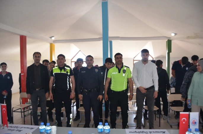 SERHED HABER- Bulanık Trafik ve Denetleme Büro Amiri İsmail Taşkıran, Trafik Polisi Mesut Dinç ve Yüksel Özdemir, öğrencilere trafik kuralları, güvenli sürüş, yaya hakları ve trafikte dikkat edilmesi gereken önemli hususlar hakkında önemli bilgiler aktardı. Bulanık Trafik ve Denetleme Büro Amiri İsmail Taşkıran, öğrencilere polis mesleği hakkında bilgi verdi.