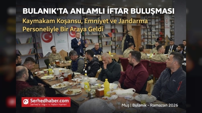SERHED HABER- Muş’un Bulanık ilçesinde Ramazan ayının manevi atmosferi, birlik ve beraberlik mesajlarıyla taçlandı. Bulanık Kaymakamı Ömer Övünç Koşansu, İlçe Jandarma Komutanlığı ve İlçe Emniyet Müdürlüğü personeli ile düzenlenen iftar programında bir araya geldi.