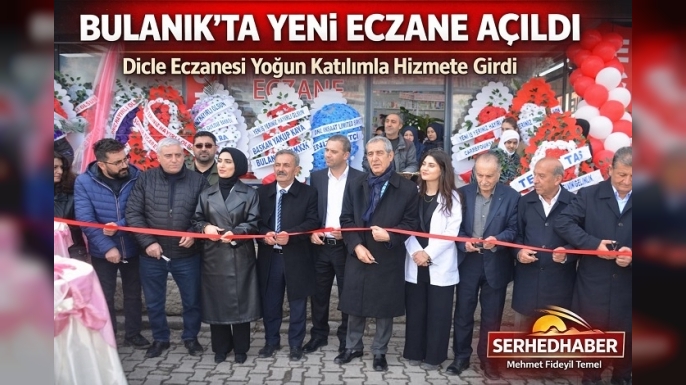 Zafer Mahallesi Şehit Binbaşı Aslan Kulaksız Caddesi üzerinde hizmete giren eczanenin açılış törenine; Bulanık Belediye Başkanı Aryan Doğan, Erentepe Belediye Başkanı Hüseyin Haydaroğulları, Rüstemgedik Belediye Başkanı Abit Özdemir, AK Parti Bulanık İlçe Başkanı Tahir Korkmaz ve yönetim kurulu üyeleri, DEM Parti Bulanık İlçe Eşbaşkanları Yüksel Filiz ve Leyla Güneş ile yönetim kurulu üyeleri, Bulanık Şoförler Odası Başkanı Bahattin Taşkıran, Bulanık Devlet Hastanesi Başhekimi Dr. Sadrettin Arslan, Kanaat Önderi Faruk Kılınç ile çok sayıda davetli katıldı.