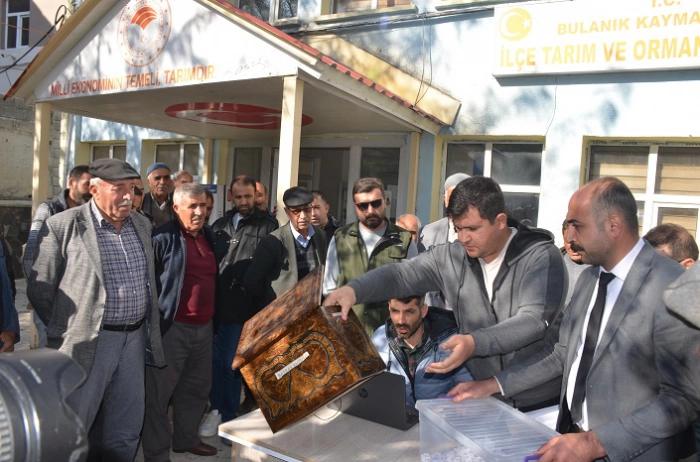Tarım ve Orman Bakanlığı tarafından desteklenen "Tarım Arazilerinin Kullanımının Etkinleştirilmesi Projesi" kapsamında Bulanık’ta sertifikalı buğday ekim alanlarını artırmak için %50 hibeli tohumluk müracaatı yapan çiftçilerin kura çekimi Bulanık Tarım ve Orman Müdürlüğü önünde yapıldı.
