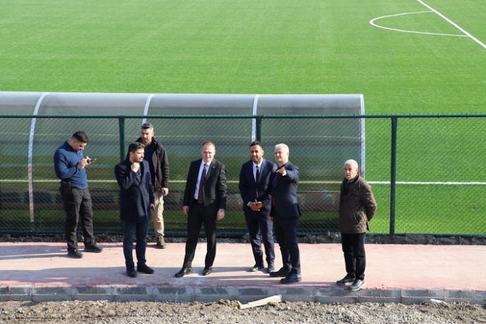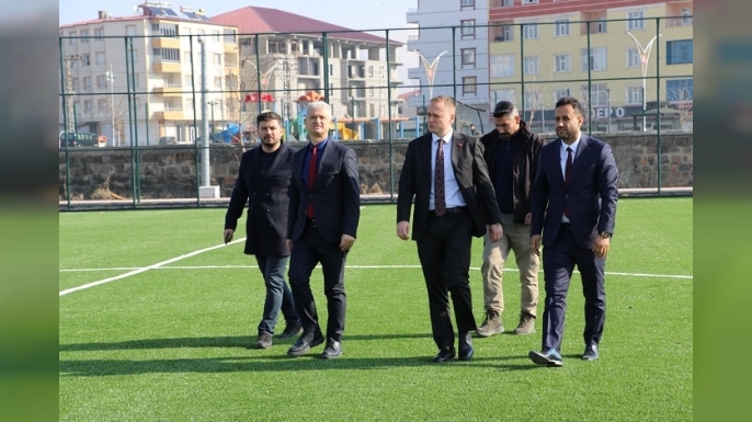 SERHED HABER - Bulanık Kaymakamı Ömer Övünç Koşansu, Muş Gençlik ve Spor İl Müdürü Yusuf Kılıç ile birlikte Bulanık Sentetik Çim Yüzeyli Futbol Sahası’nda incelemelerde bulunarak tamamlanan çalışmalar hakkında yerinde değerlendirmelerde bulundu.