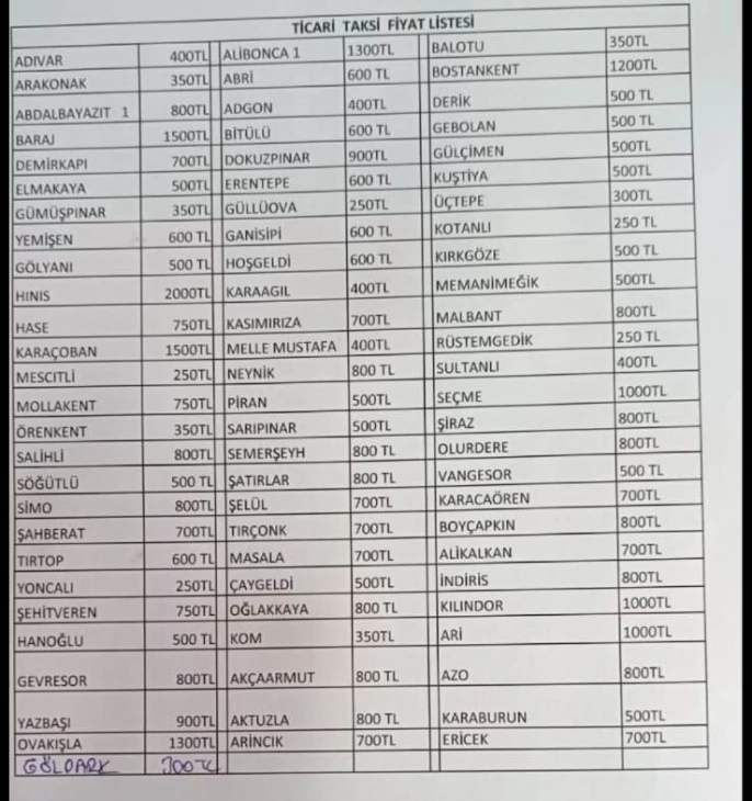 SERHED HABER- İşte Yeni Tarife göre Bulanık’ta Taksi Ücretleri: