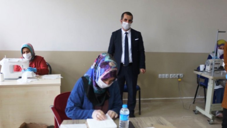 İlçemiz Halk Eğitim Merkezi ve Aile Destek Eğitimi Merkezindeki kadınlar, korona virüsle mücadele kapsamında maske üretimine başladı.