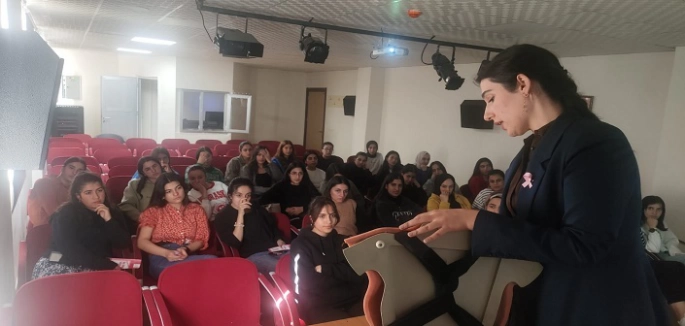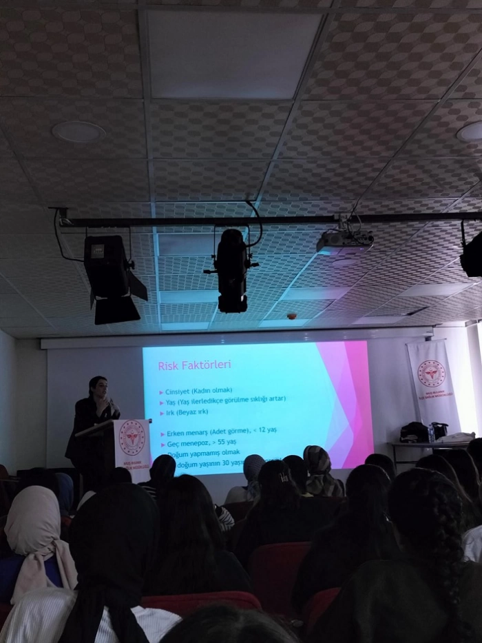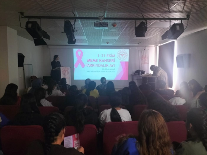 Bulanık İlçe Sağlık Müdürlüğü Dr Zilan Akdağ tarafından verilen eğitimde meme kanserinin risk faktörleri, belirtileri ve tarama yöntemlerine vurgu yapıldı.