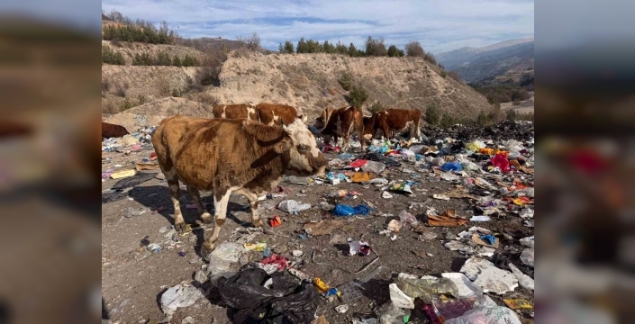 Hayvanların büyük çöp yığınları arasında poşetlerin içerisinden meyve ve patates kabuklarıyla beslendiklerini söyleyen Karip Cankan, "Bu bölgede hayvanlar otlarken çöp alanına inmişler.