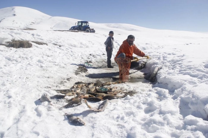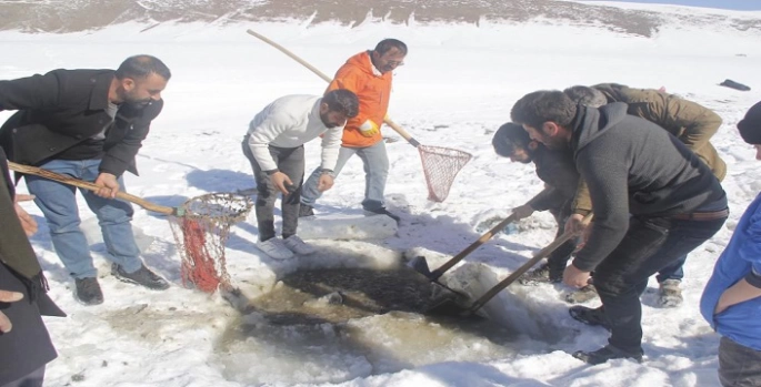 Bilal Çeber ise inşaatçı olduğunu ve kış mevsiminde ise gölete gelerek buzu kırıp balık avladığını söyledi. Çeber, "Bugün balığa geldik, çok şükür balık bereketli çıktı. Tuttuğumuz balıkları köye götüreceğiz, köy halkına vereceğiz. Tuttuğumuz balıklar sazan balığıdır. Çok lezzetlidir. Kışın lezzeti daha çok olur" diye konuştu.