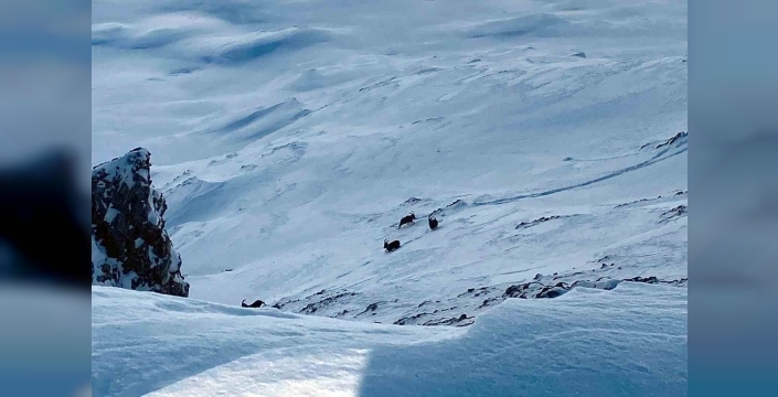 Yaylada karla kaplı arazide yiyecek arayan dağ keçileriyle karşılaşan gençler, o anları cep telefonu kamerasıyla kayıt altına aldı. Bölgede etkili olan kar yağışı nedeniyle dağ keçilerinin yüksek kesimlerden daha aşağı rakımlara indiği gözlemlendi.