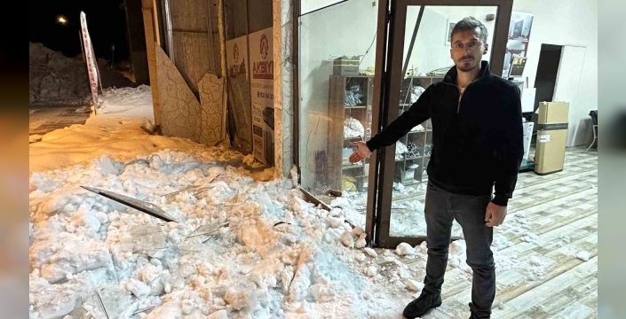 Esenyurt Mahallesi’nde bulunan sitedeki bir binanın çatısında biriken kar ve buz kütleleri büyük bir gürültüyle düştü. O esnada zemin katta bulunan Cenk Akbıyık’a ait doğal gaz dükkanının vitrini, düşen kütlelerin basıncıyla patladı. Parçalanan camlar ve yerinden sökülen çerçeveler içeriye savruldu.