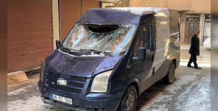 SERHED HABER- İpek Mahallesi Hacı Ömer Sabancı Caddesi’nde ilerleyen Şahap Aybar yönetimindeki 68 ET 560 plakalı minibüsün üzerine, bir binanın 7’nci katından kar kütlesi düştü.