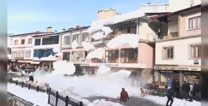 Çatı saçaklarında ve yüksek binalarda biriken karların risk oluşturduğunu belirten yetkililer, vatandaşları dikkatli olmaları konusunda uyardı.