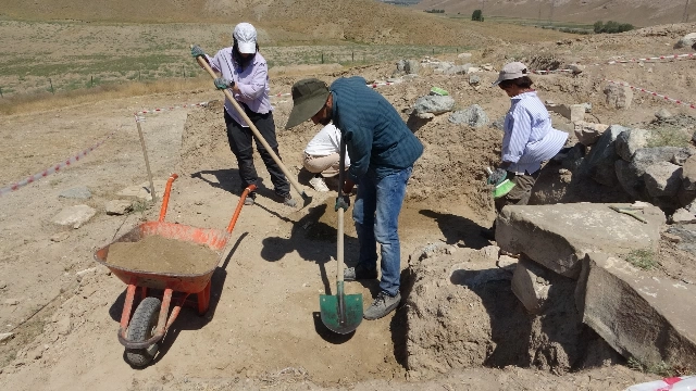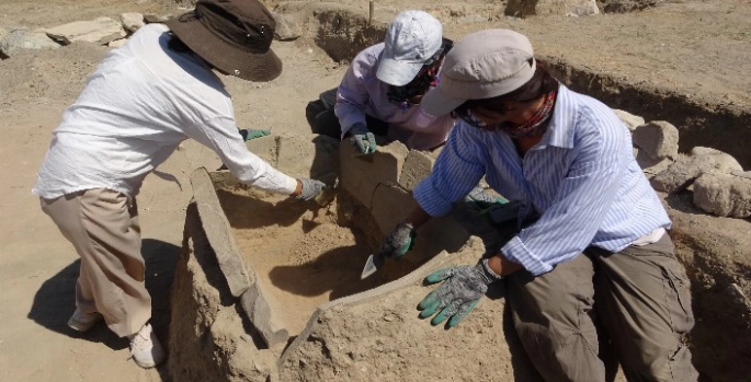 “Alanın etrafında sur şeklinde taş dizileri devam ediyor. Arkeolojik olarak bunun ne ihtiva ettiğiyle ilgili en büyük çalışmalarımızdan biri de bu surun sırrını çözmek. Sur oval bir şekilde devam ediyor. Mezarlık alanında bu sura neden ihtiyaç duyuldu? Bu kazılarda bunun cevabını da arıyoruz. Diğer taraftan Çavuştepe Kalesi, Urartu’nun zirve noktasını oluşturuyor. Buradaki gömüler zirve noktasını oluşturan krallık döneminde başlıyor. Nekropoldeki gömü de 250-300 yıl devam ettiğini tahmin ediyoruz. Çünkü Urartu Devleti yıkıldıktan sonra da bu devam etmiş gözüküyor. Urartu Devleti yıkılınca halk yok olmuyor, burada yaşamını devam ettiriyor.”