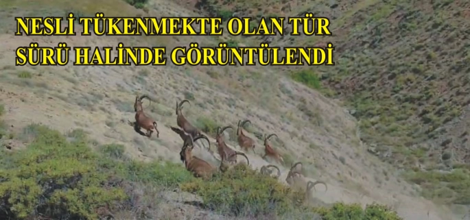 Elazığ’da nesli tükenmekte olan ve koruma altında bulunan çengel boynuzlu dağ keçisi sürüsü görüntülendi.