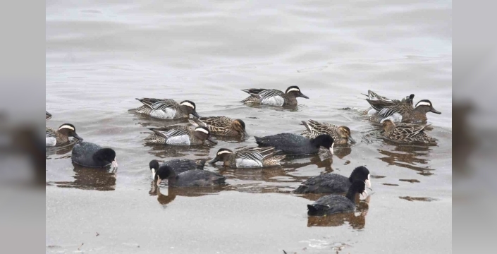 Bitlis’in Tatvan ilçesinde Van Gölü sahilinde göçmen bir tür olan Çıkrıkçın ördekleri görüntülendi.