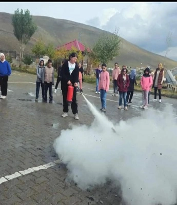 SERHED HABER - Ardahan'ın Çıldır ilçesinde Anadolu İmam Hatip Lisesi'nde olası yangına karşı öğrencilerin, öğretmenlerin ve personelin afetlere ne kadar hazırlıklı olup olmadığı test edildi. Çıldır Anadolu İmam Hatip Lisesi Sivil Savunma Kulübü çalışmaları kapsamında yapılan tatbikata, okul idaresi, öğretmenler ve öğrenciler katıldı. ÇAİH Lisesi konferans salonunda deprem, yangın, tahliye planı, siren sesleri ve diğer detay konularına yönelik bilgilendirmenin yapılmasının ardından çalan sirenlerle öğrenciler sınıflarda deprem anında yapılması gerekenleri uyguladılar. Acil durum alarmının ardından okuldaki öğrenci ve öğretmenden oluşan topluluk, kontrollü bir şekilde okul binasından çıkarıldı. Okul bahçesinde yangın tüpü ile kontrollü olarak yakılan yangın söndürülerek tatbikat sona erdirildi.