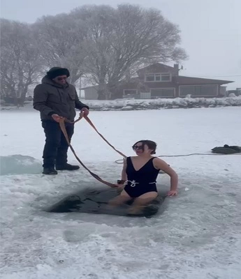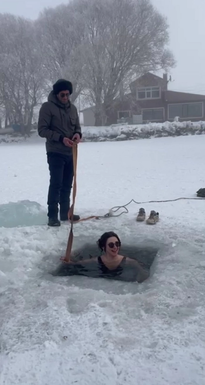 SERHED HABER - Bir kadın Çıldır Gölü'nde buzlu suya girerek yaklaşık 30 saniye suyun içerisinde kaldı. O anlar soysal medyada viral oldu.