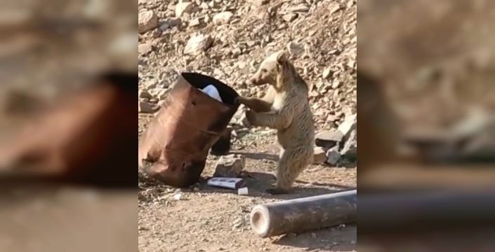 SERHED HABER - Çukurca ilçedeki bir şantiye yakınlarında dağdan inen ayı, çevredeki çöp kovasını devirerek yiyecek aradı. O anlar cep telefonu kamerasıyla saniye saniye kaydedildi. Görüntülerde ayının çevrede bir süre dolandığı, ardından ormanlık alana doğru uzaklaştığı görüldü. Vatandaşlar, bölgede son günlerde ayıların sık sık yerleşim alanlarına indiğini belirtti.